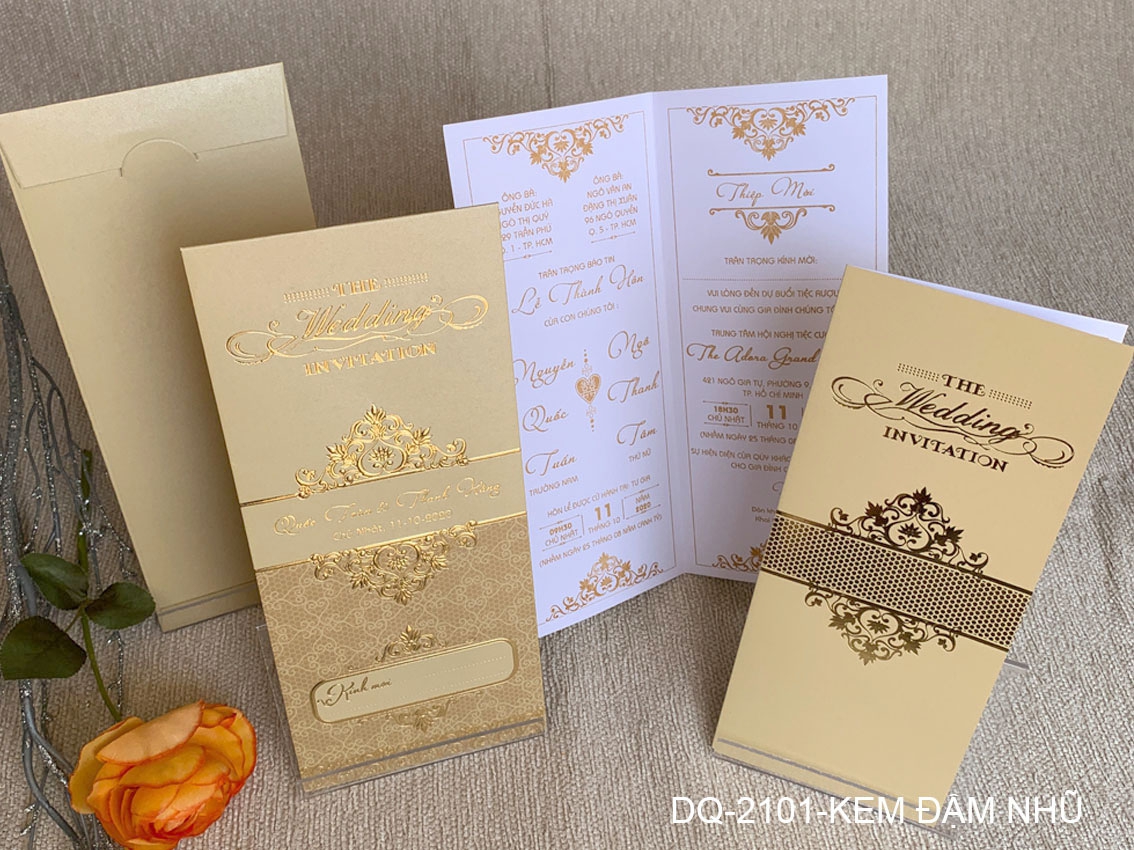THIỆP CƯỚI GIẤY THƠM DQ-2101 KEM NHŨ